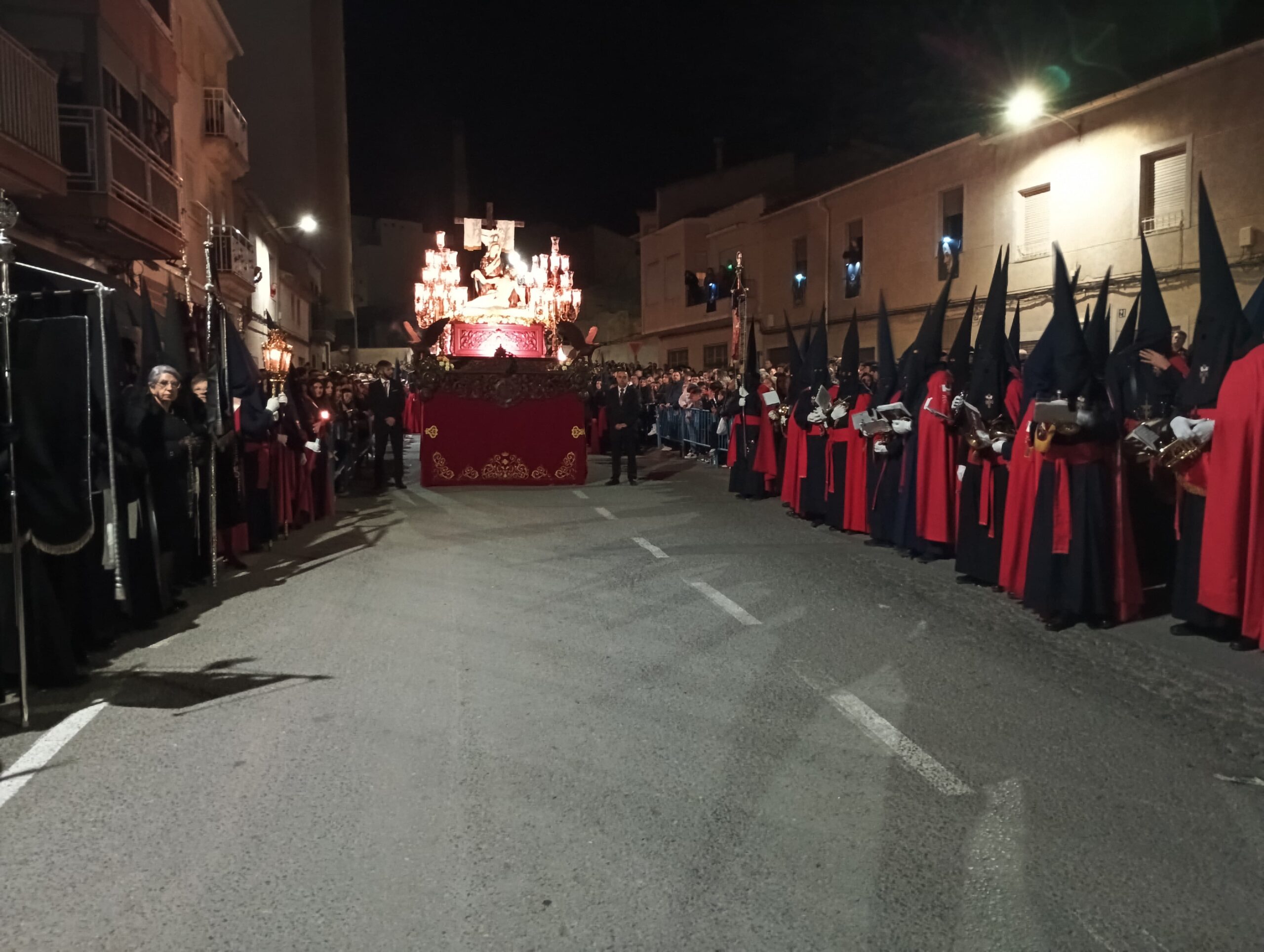 La cofradía de Nuestra Señora de la Soledad se fundó en 1943. Talla de vestir de Nuestra Señora de la Soledad, de mediados del siglo XVIII, de autor desconocido, recuperada tras la guerra civil. Vestida con manto en terciopelo negro bordado en plata por las Sras. Remedios Rico Sánchez, Catalina Maestre y Ele