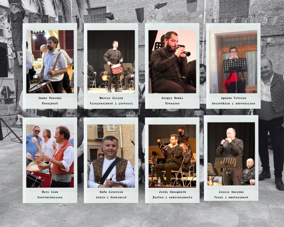 La junta directiva es completa amb quatre vocals: el dolçainer Rafa Alberola, encarregat també de l’arxiu i representant en la Federació Valenciana de Dolçainers i Tabaleters; el percussionista Salvador Insa, responsable de contractacions i noves actuacions; el dolçainer Jordi Sanoguera, que coordinarà dietes i esdeveniments, i Josele Sanjuan, que assumirà les tasques de manteniment.