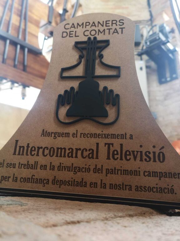 A més, cal destacar que com a detall en la nostra casa, Intercomarcal Televisió, han volgut han volgut donar-nos un reconeixement a la difusió del toc de campanes. Agraïm aquest detall que ja forma part de la nostra història.