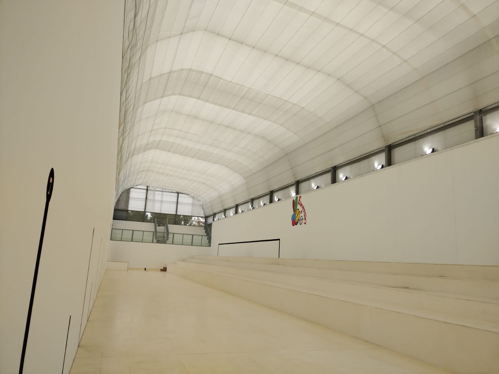 D’altra banda, l’actuació ha contemplat la reforma de la graderia, atenent les necessitats que havien traslladat els usuaris respecte a l’altura i l’amplitud. A més a més, s’han cobert els laterals del recinte mitjançant panells polimèrics per a previndre l’entrada d’aigua en el mateix durant els dies de pluja. Malgrat que s’han cobert els laterals, s’ha deixat un espai entre la coberta de l’edifici i el lateral lliure per a afavorir la circulació d’aire.