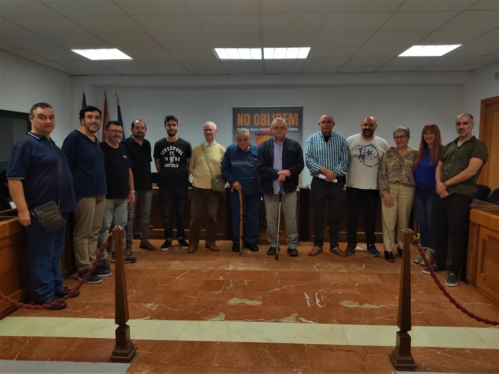 En el Saló de plens i reconeixent el que representa, la Casa del Poble, per continuar amb la segona part de l’acte, la presentació de la unitat didàctica “No Oblidem”, Salomé presenta als professors Rafa Enguix i Àlex Barber, part dels protagonistes del projecte, que junts a Diego Fernández i el dissenyador de Roman Sánchez. Informen dels seus continguts i les experiències en implantar-lo als seus IES, ens gratifica al Fòrum que vam prendre la decisió encertada, el realitza la Unitat Didàctica pel seu valor pedagògic  i per a la introducció a les aules.