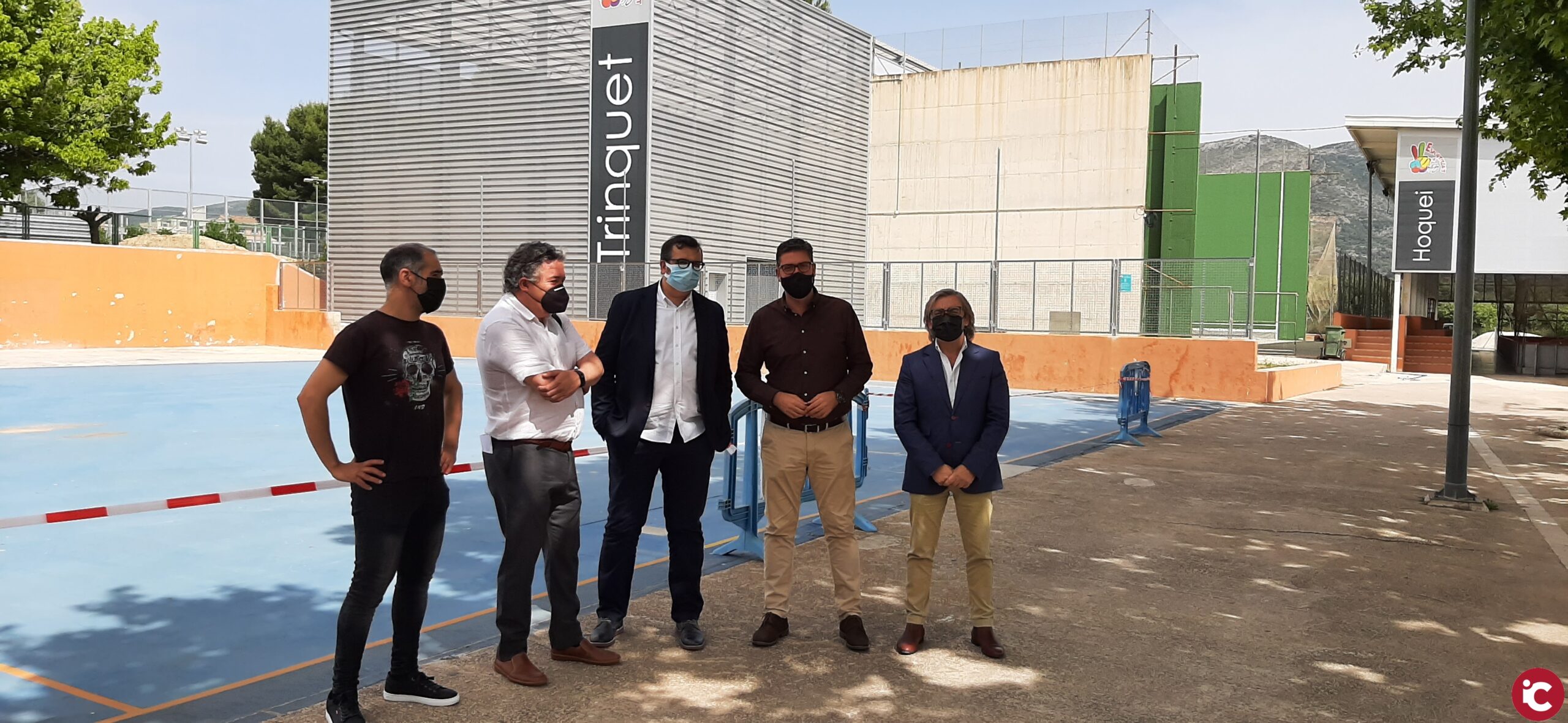 El diputado de Infraestructuras, Javier Gutiérrez, ha visitado esta mañana el municipio de Muro de Alcoy, acompañado por su alcalde, Gabriel Tomás Salvador, y el concejal de Urbanismo, Juan Manuel Sanchís, para inaugurar y conocer el resultado de las obras de mejora de las instalaciones deportivas subvencionadas por la Diputación de Alicante.