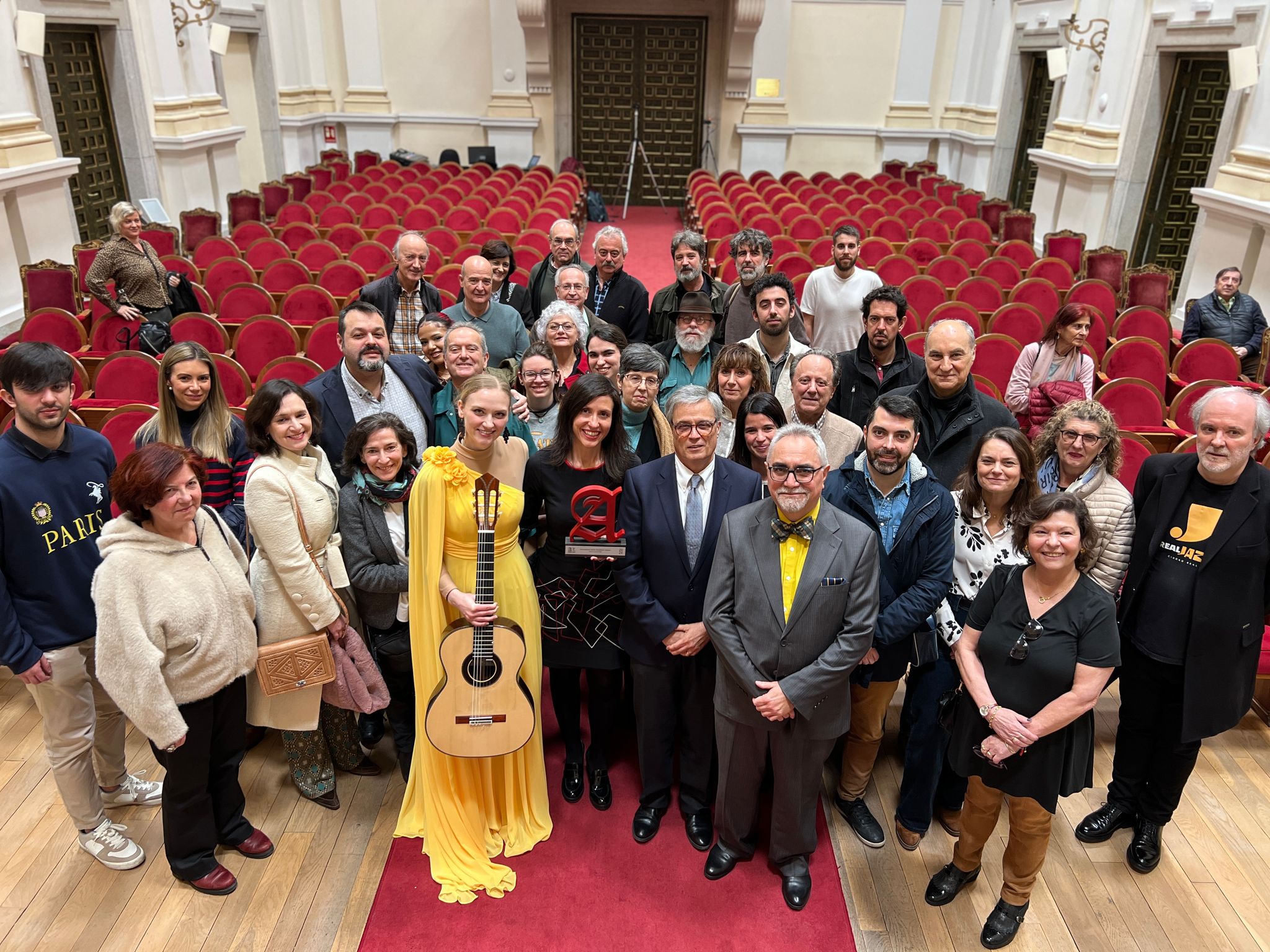 La ceremonia contó con la presencia de destacados representantes del mundo de la música, la cultura y la comunicación. Durante el evento, los asistentes pudieron disfrutar de la actuación de la guitarrista Julia Trintschuk, ganadora del primer premio en el Concurso Internacional de Guitarra Alhambra (CIGA) en 2024, quien ofreció una brillante interpretación que puso de manifiesto la riqueza y versatilidad del instrumento y su capacidad de sorprender a un público totalmente entregado.