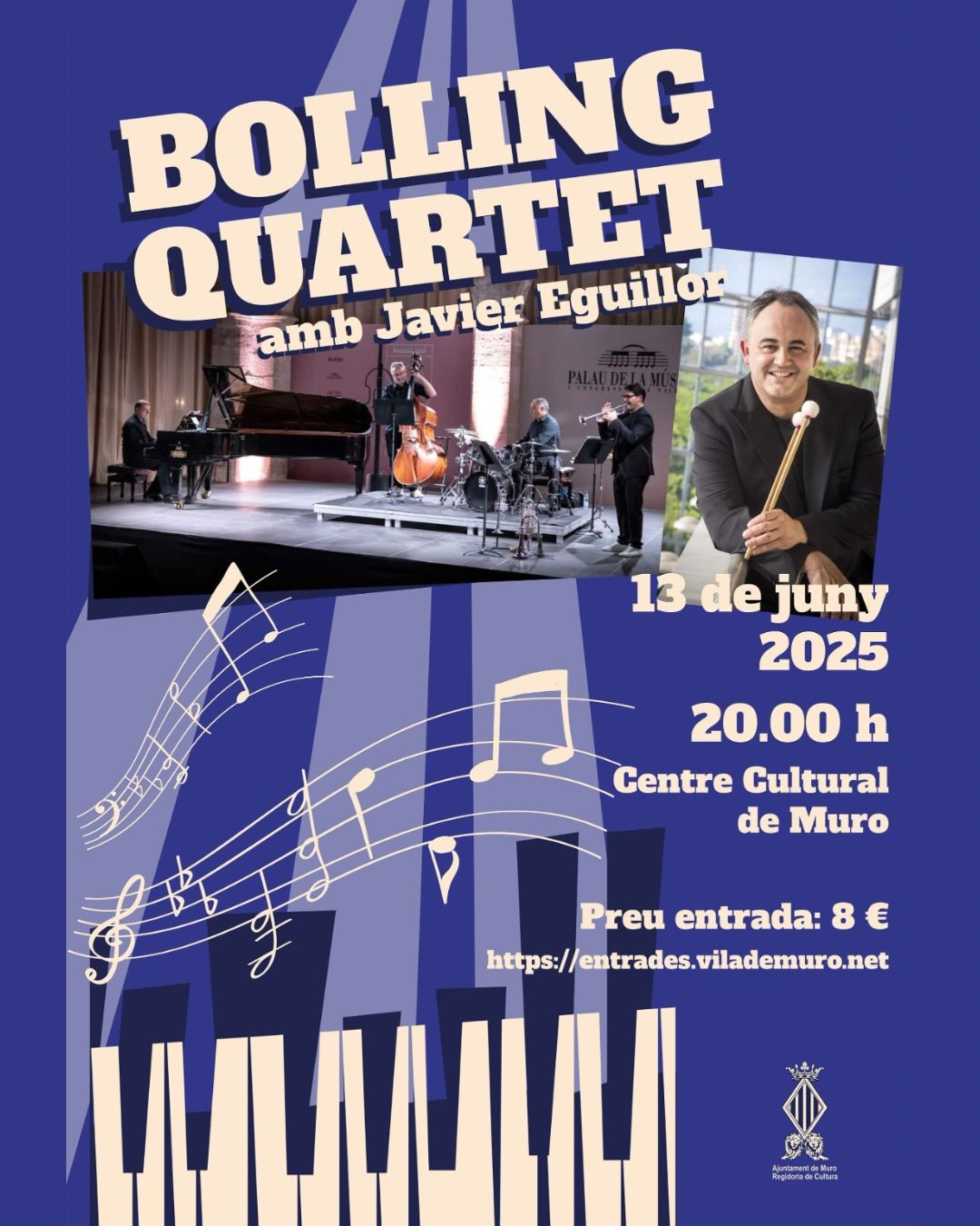 Muro viurà dues vetlades musicals de primer nivell que confirmen la seua condició de laboratori cultural i pedagògic, dues propostes tant diferents com complementàries que convergeixen en una mateixa idea: posar la música de qualitat a l’abast de tothom. Divendres 13 de juny, a les 8 de la vesprada, el Centre Cultural acollirà el Bolling Quartet, integrat per Raül Junquera a la trompa, Javier Sapiña al contrabaix, Adolfo García al piano i Javier Eguillor a la bateria, tots quatre són reconeguts músics de prestigi.