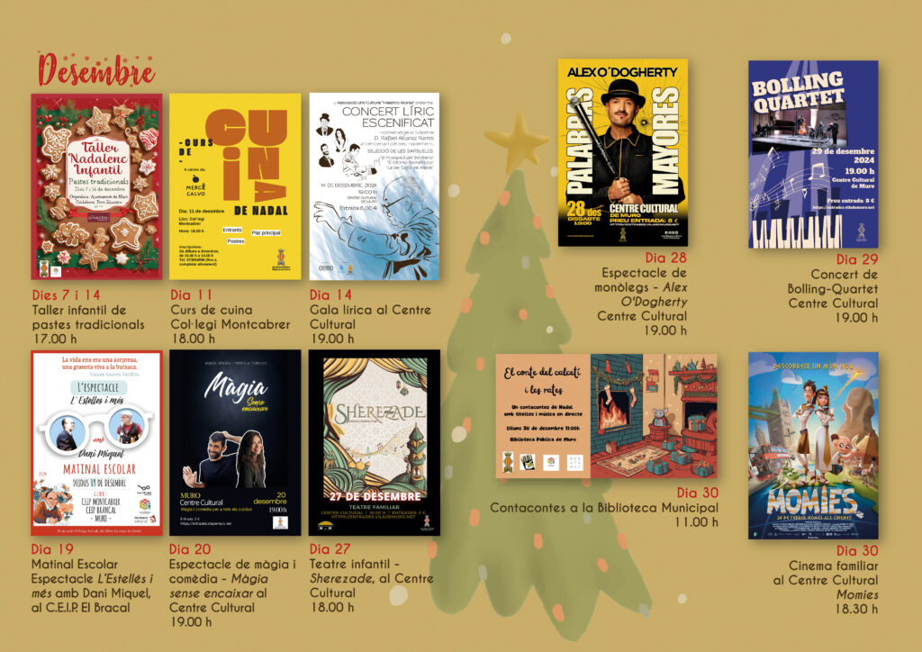 Visita del Pare Noël i els seus Elfos de 18:00 a 20:30 hores en la Plaça Matzem. Els xiquets i xiquetes de Muro podran entregar les seues cartes amb els seus desitjos. A més podran gaudir d’una xocolatada i una màquina de núvols de sucre així com diverses atraccions. També hi haurà un espectacle de ball de la mà d’Ainhoa Font.