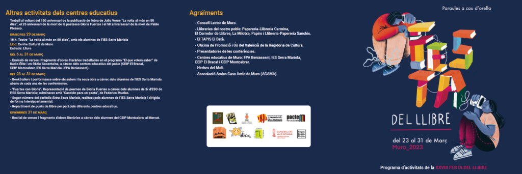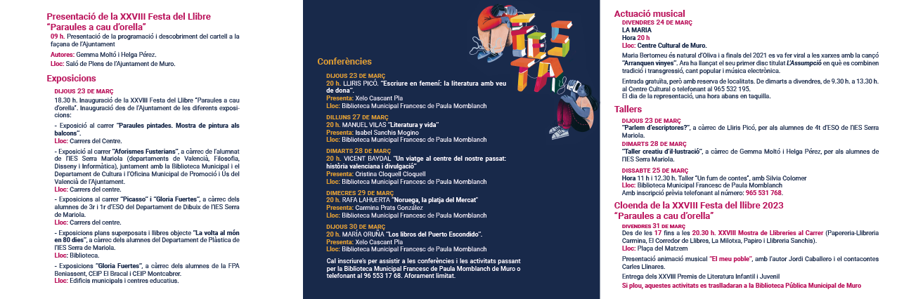 El pròxim dia 23 de març, Muro comença amb la XXVIII Festa del Llibre, que porta per lema «Paraules a cau d’orella».