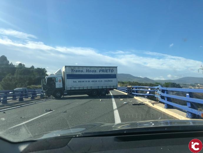 El vent bufa amb tanta força en la Comunitat Valenciana que ha fet trontollar vehicles pesats. De fet, un camió ha patit un accident aquest matí en xocar contra una barana en l’A-7, al seu pas per Alcúdia, el Comtat. Pel que sembla, tot indica que el conductor ha perdut el control del vehicle mentre circulava per aquesta via.
