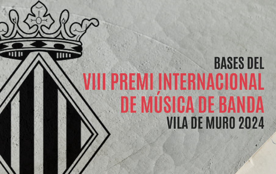 L’Ajuntament de Muro convoca el VIII PREMI INTERNACIONAL DE COMPOSICIÓ DE MÚSICA PER A BANDA VILA DE MURO 2024 amb l’objectiu de fomentar i enriquir el patrimoni musical i cultural de les bandes de música, i també per a estimular la creativitat dels compositors d’aquesta especialitat instrumental, i contribuir amb això a augmentar el catàleg de composicions per a orquestres de vent i percussió.