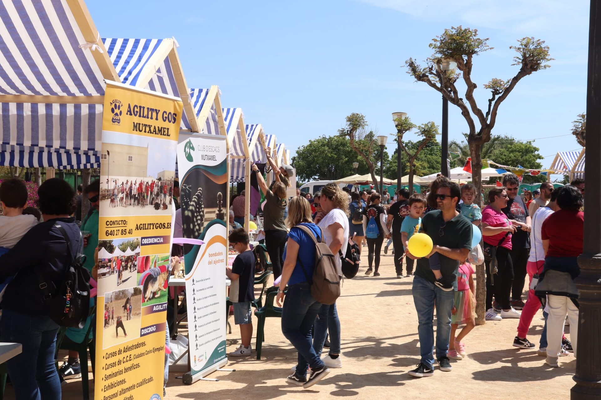 El púbico pudo pasar por las casetas informativas de entidades como la Asociación de Familias Numerosas ASAFAN Alicante; la Asociación de Familias Adoptantes de la Comunidad Valenciana ADOPTA2; Ninos Escuela Infantil Mutxamel; la Escuela Infantil Els Xiquets; Asociación de Mujeres Mutxameleras; la Asociación Dajla; Agility Gos; la Asociación Club Bonsai; el colectivo de escritores Castell de Llibres; el Grupo Scout Quetzal 653; el Club de Petanca Mutxamel; el Club d’Escacs Mutxamel y Club de Baloncesto Mutxamel.