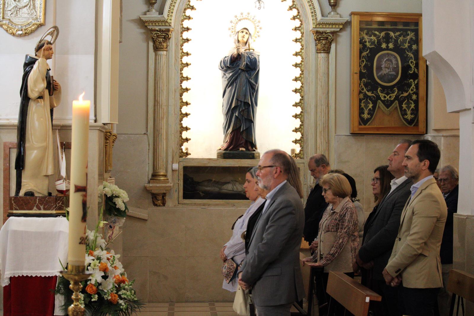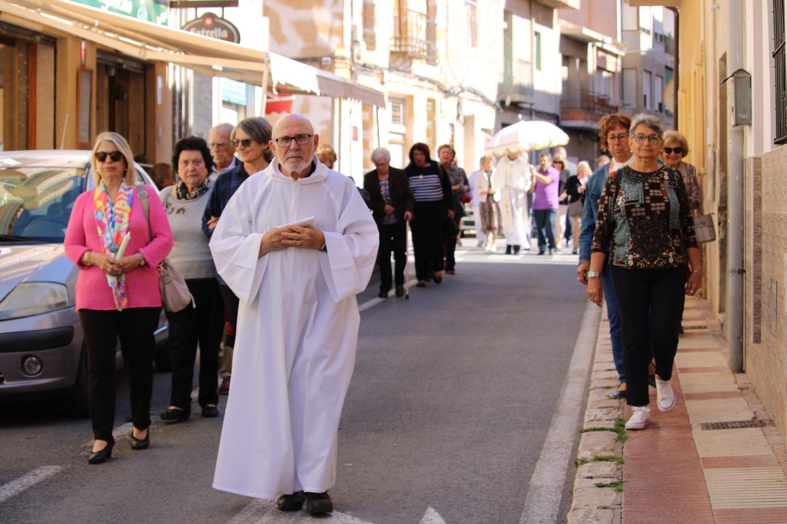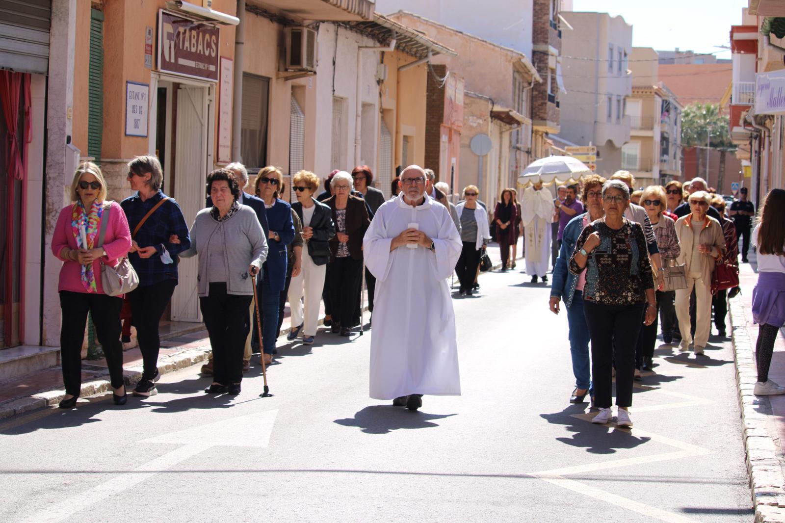 La Misa, muy concurrida, ha sido oficiada por el párroco Pedro Juárez. Entre los fieles estaban el alcalde, Juanjo Berenguer, y los concejales Lourdes Llopis, Marisa Navarro, Rafa Galvañ, Dorian Gomis, Maricarmen Alemañ y María Jesús Bernabeu, que han participado también en la procesión.