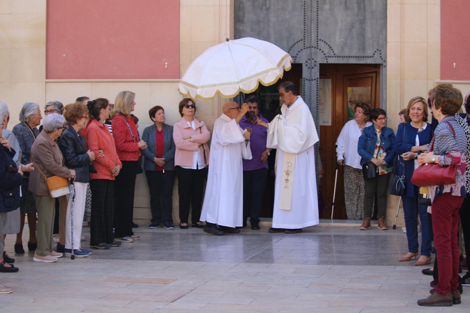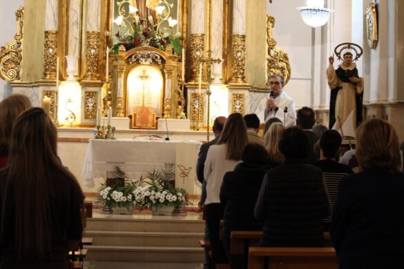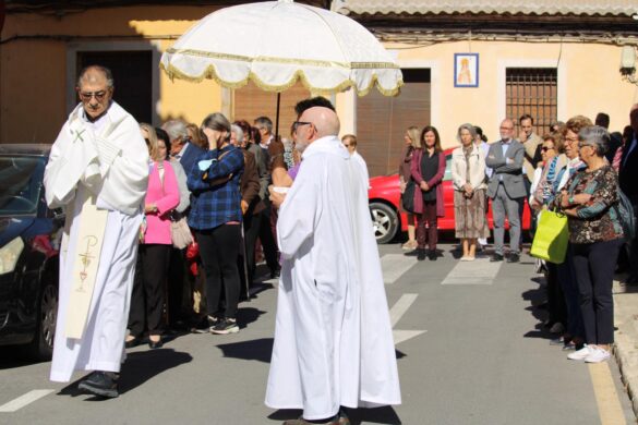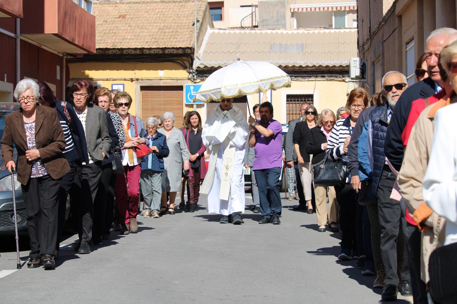 La Misa, muy concurrida, ha sido oficiada por el párroco Pedro Juárez. Entre los fieles estaban el alcalde, Juanjo Berenguer, y los concejales Lourdes Llopis, Marisa Navarro, Rafa Galvañ, Dorian Gomis, Maricarmen Alemañ y María Jesús Bernabeu, que han participado también en la procesión.
