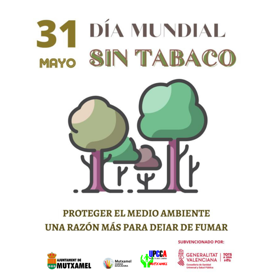 La Unidad de Prevención Comunitaria en Conductas Adictivas (UPCCA) de Mutxamel participa este año en la campaña en red promovida por todas las UPCCA con motivo del Día Mundial sin Tabaco 2022, marcado en el calendario hoy, 31 de mayo. Las UPCCA en Red de la Comunitat Valenciana están desarrollando una campaña de concienciación y sensibilización en base al lema de la Organización Mundial de la Salud (OMS) para el 2022: “El tabaco, una amenaza para nuestro medio ambiente”.