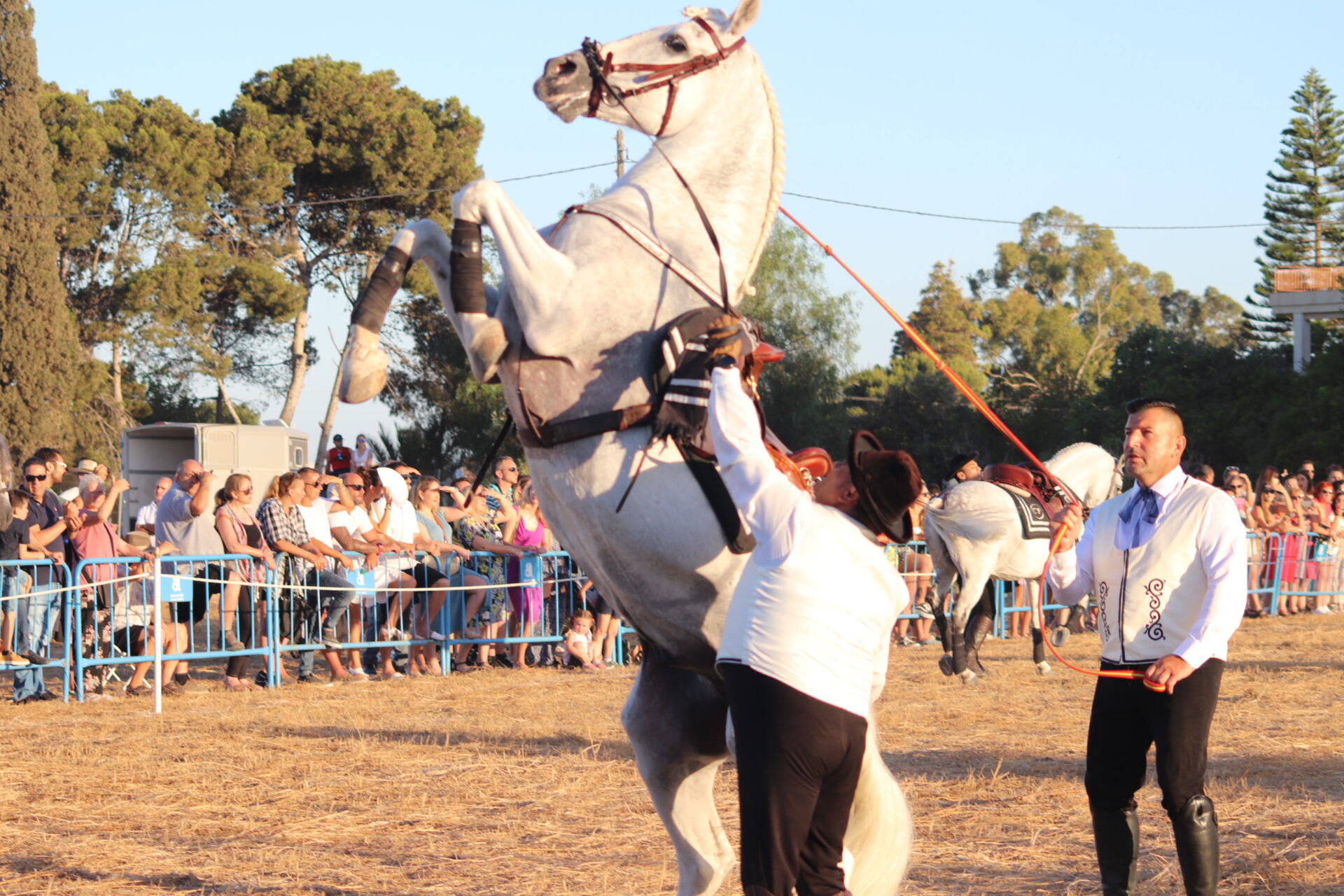 El Festival de Andalucía 2022 se abrió con el espectáculo ecuestre ‘La Doma en el Aire’. El público que se acercó hasta una parcela situada junto a la Casa de Cultura disfrutó de la conjunción del caballo y el baile flamenco, una combinación llena de color y fantasía basado en distintas disciplinas de la equitación, incluida la Doma Clásica y la Alta Escuela Española.
