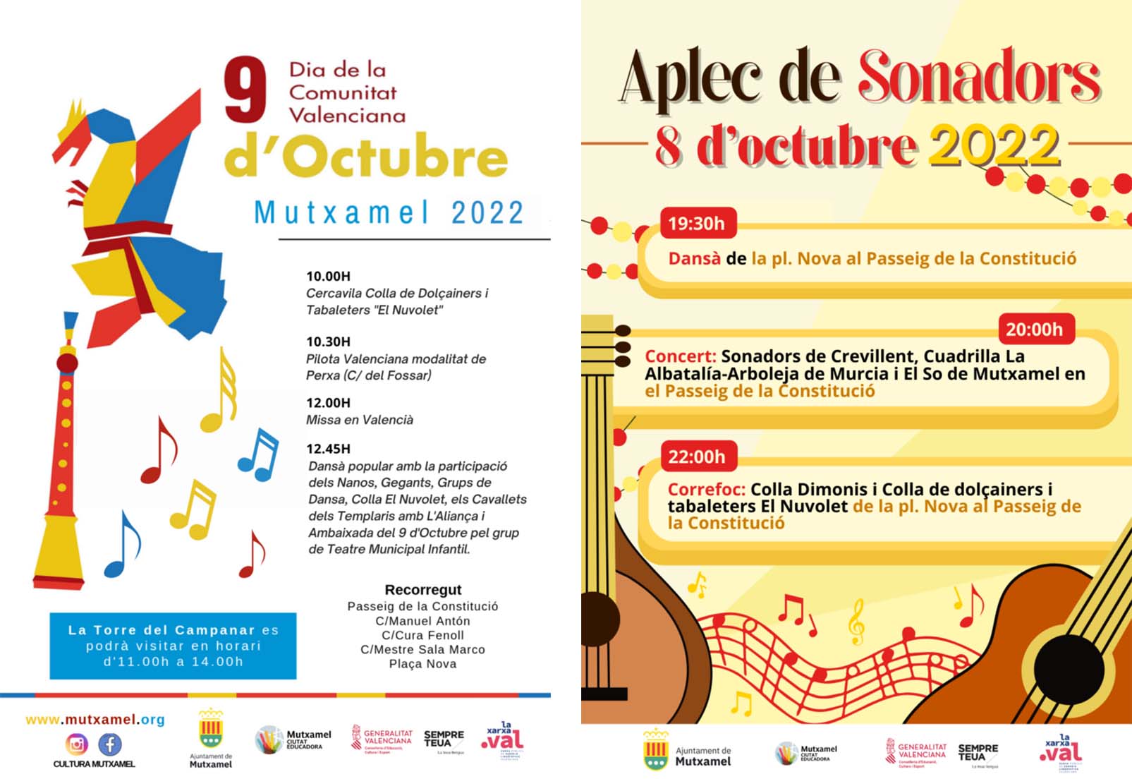 El dissabte 8 actuaran els Sonadors de Crevillent, el grup La Albatalía de Múrcia i el Sota de Mutxamel, i el diumenge 9 es podrà visitar la Torre Campanar tot el matí