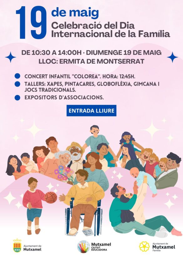 L’Ajuntament de Mutxamel ha preparat diumenge que ve 19 de maig, un matí ple d’activitats lúdic educatives, turístiques i esportives per a celebrar el “Dia de la Família”. Una data que el consistori porta commemorant des de fa anys amb l’objectiu de visibilitzar la importància del nucli familiar, la cura de l’entorn, l’educació, el joc, l’oci i la vida saludable. En aquesta edició, les àrees de Família, Turisme i Participació Ciutadana han unit tres activitats per a donar encara més rellevància a aquesta jornada de convivència.