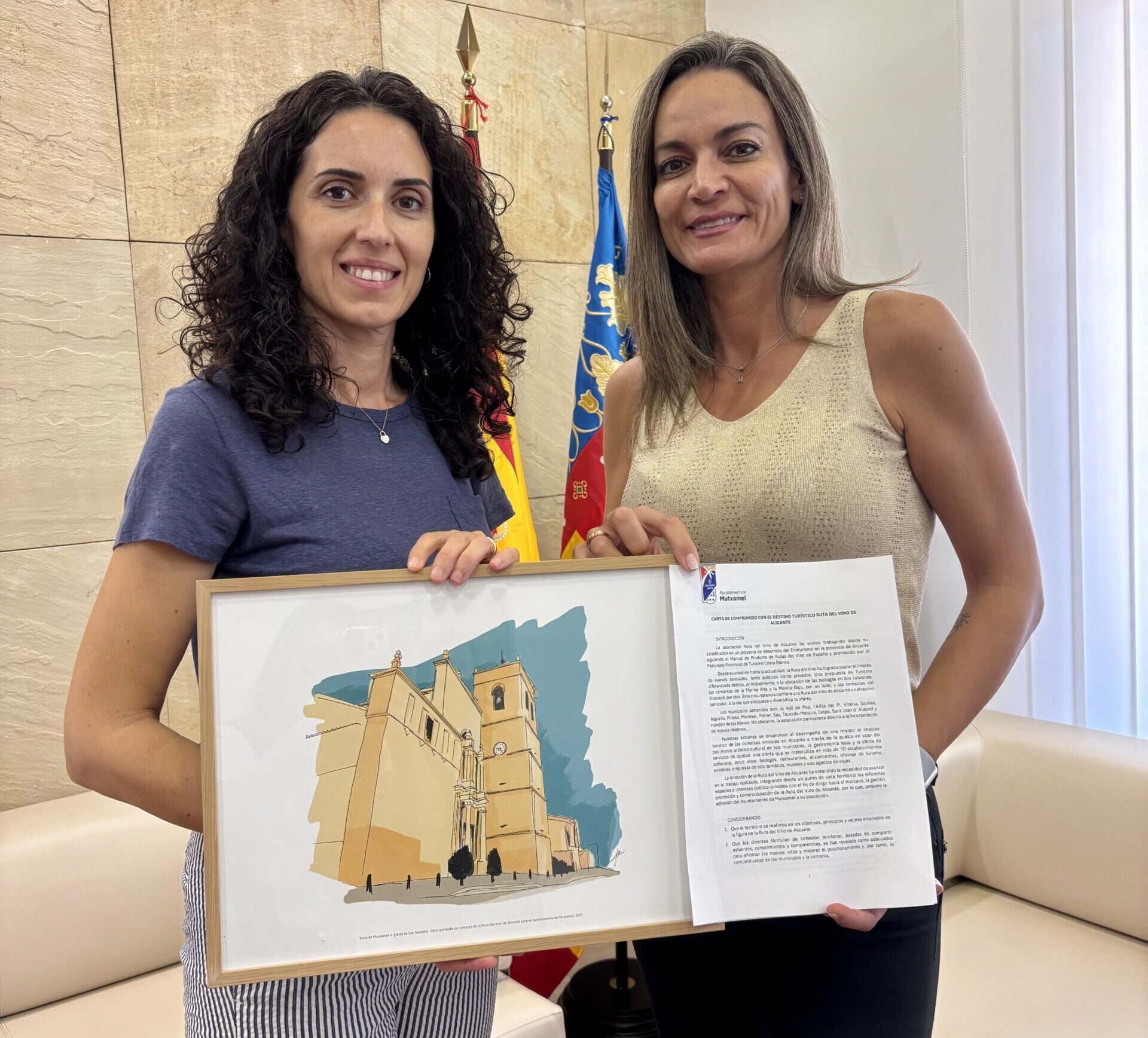 La Ruta del Vino de Alicante y el Ayuntamiento de Mutxamel han firmado esta mañana su carta de compromiso, consolidando así su pacto por el desarrollo turístico, enológico y económico del municipio.
