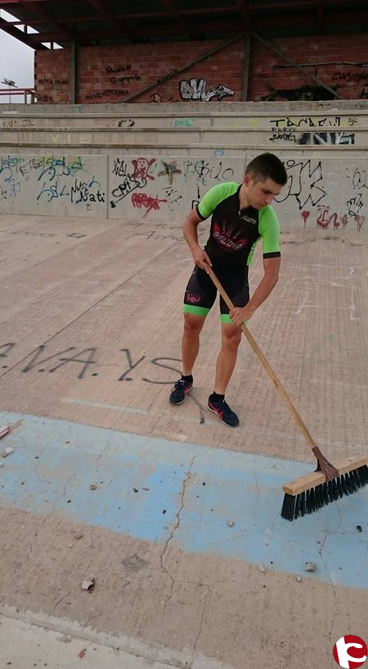 Como ya saben, hace unos días la prensa a nivel nacional se hacía eco de una historia «surrealista». El ciclista, Julio Alberto Amores, que comenzaba su preparación para los Juegos Olímpicos de Río de Janeiro, entrenaba entre vidrios y restos de botellones en el velódromo de Novelda. En las últimas semanas tenía que barrer la pista para poder entrenar. Desde hace unos días, un par de máquinas están acondicionando la instalación, que comenzó a construirse en 1989 y nunca llegó a terminarse.