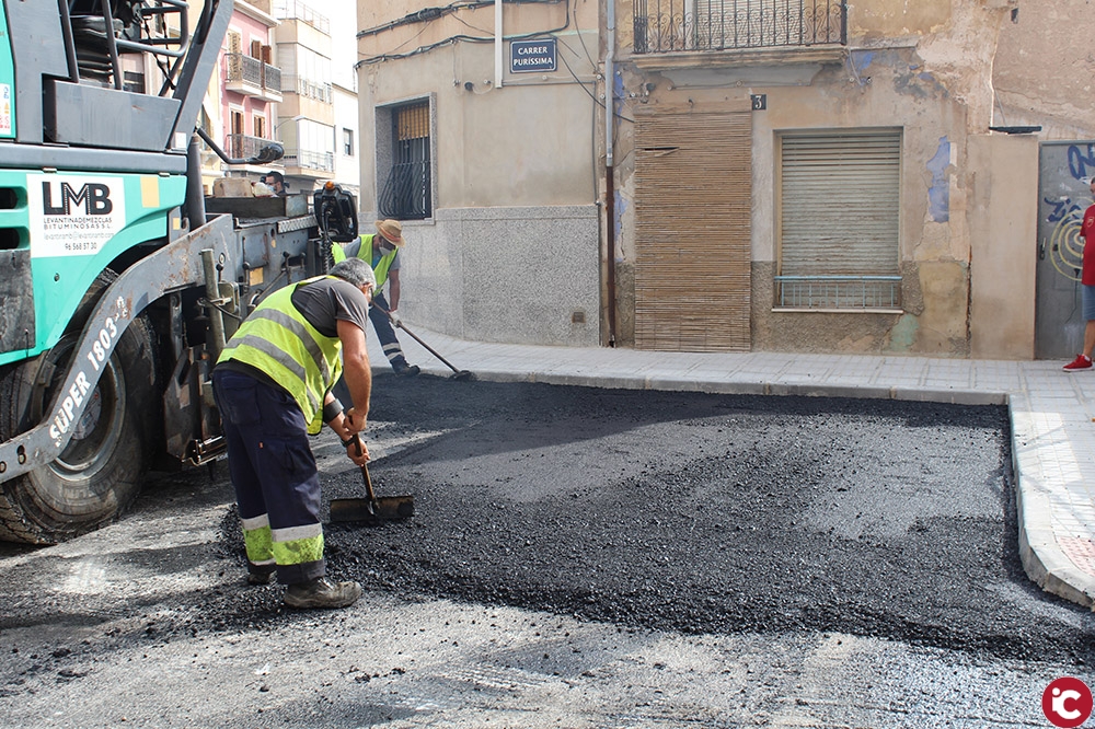 Tras semanas de actuaciones en las aceras para dotarlas de accesibilidad han comenzado los trabajos de asfaltado del firme en las calles Travessia, Navarra y Sentenero, donde posteriormente se acometerán las labores de plantación de arbolado y sistema de riego e instalación de la señalización horizontal y vertical. Paralelamente también se han iniciado las tareas de fresado, previas al asfaltado completo del barrio de La Garrova, donde se actuará en las calles Quijote, Cervantes, Maestro Ramis, Capellá Margall, Valle Inclán, Alfonso XII, Miguel Hernández y Sentenero.