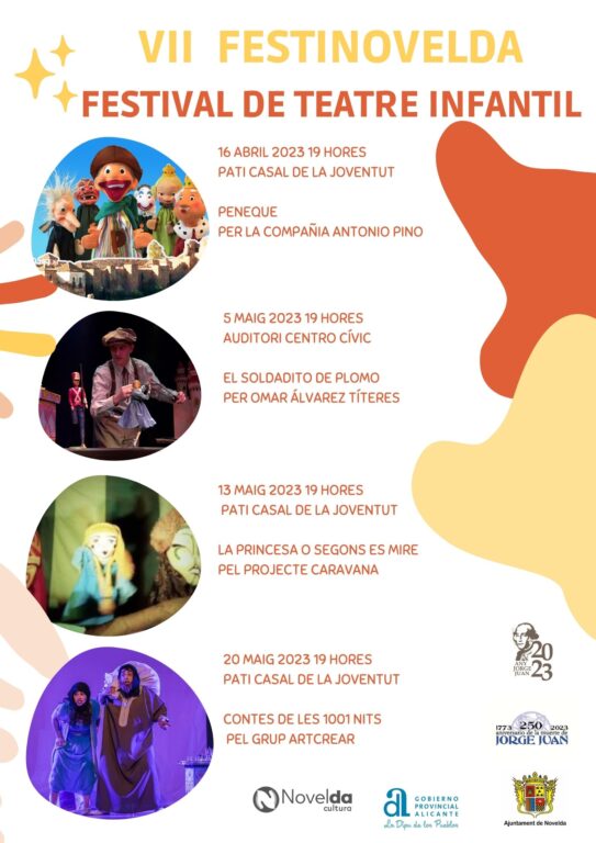Los espectáculos, financiados a través de la subvención que la Diputación de Alicante ha concedido al Ayuntamiento para el desarrollo de actividades culturales, musicales y escénicas, correrán a cargo de las compañías teatrales Antonio Pino, Projecte Caravana y Grup Artcrear, que realizarán sus actuaciones en el patio del Casal de la Juventud, y Omar Álvarez Títeres, que representará la obra “El soldadito de plomo” en el Auditorio del Centro Cívico.