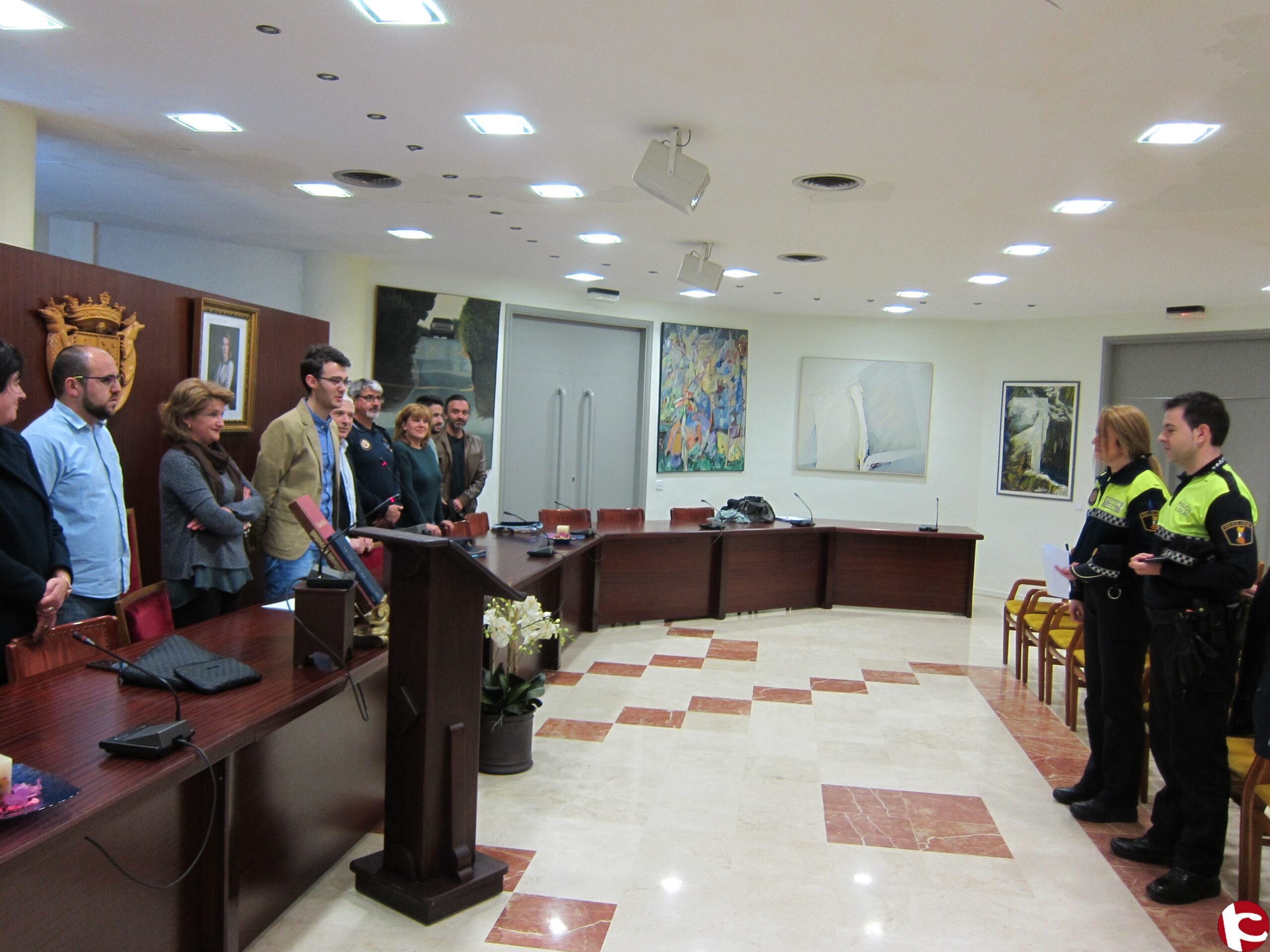 01 Abril. En un acto presidido por el alcalde, Fran Martínez, acompañado por varios miembros de la corporación municipal, el salón de plenos ha acogido la toma de posesión de sus cargos de dos nuevos agentes de la policía local.