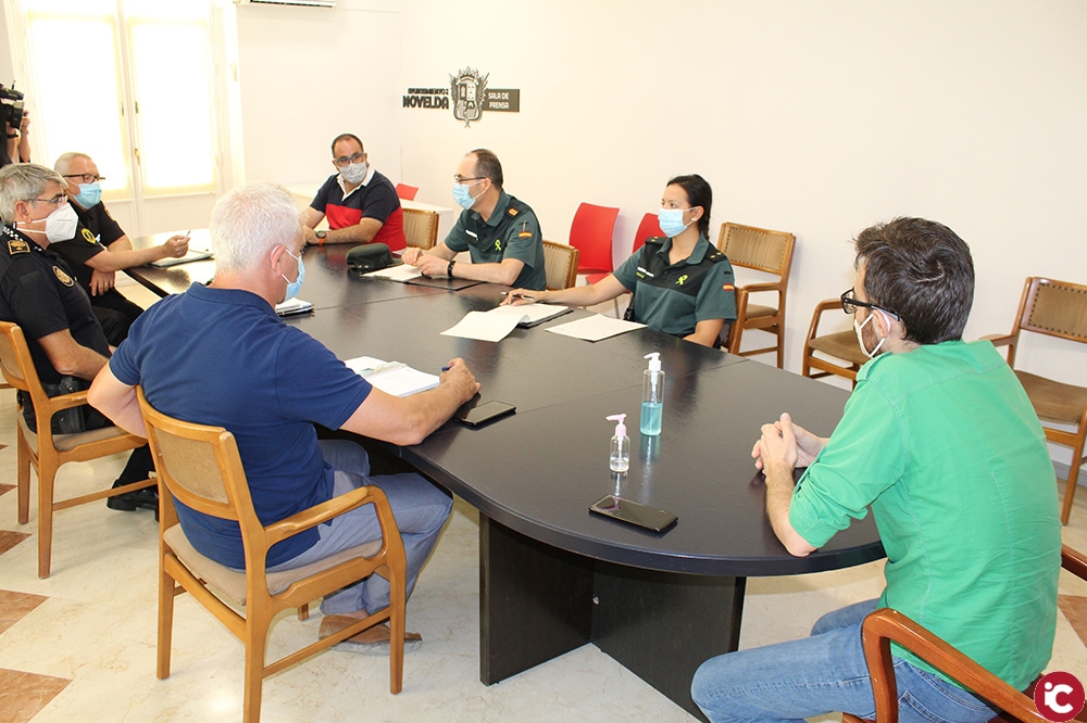 Con el objetivo de coordinar las medidas de prevención, vigilancia y control ante una semana que debería haber sido festiva el alcalde de Novelda, junto a los concejales de Seguridad Ciudadana y Emergencias, Ximo Mira y Carlos Vizcaíno respectivamente, ha mantenido un encuentro de trabajo en el que han participado el comisario de Policía Local, Juan Carlos Escolano,y miembros de la comandancia de la Guardia Civil de Novelda y la Policía Autonómica, en el que se han determinado las principales actuaciones de supervisión del cumplimiento de las recomendaciones de prevención para los próximos días.