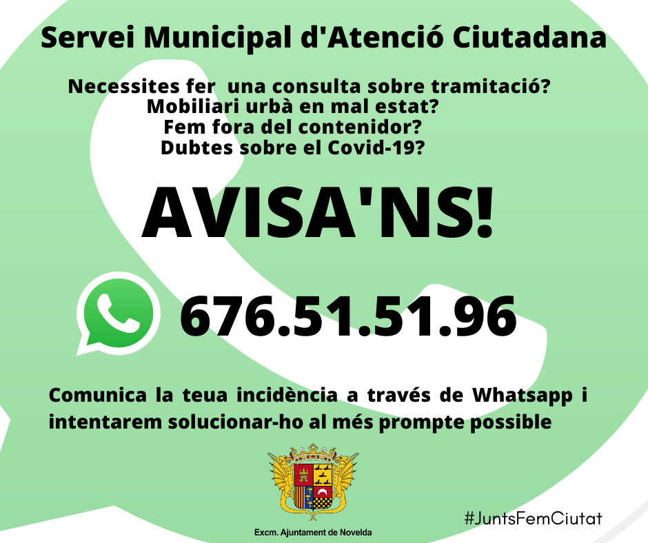 17 abr. Con el objetivo de mejorar el servicio de atención ciudadana y facilitar una nueva herramienta que permita facilitar la comunicación el Ayuntamiento de Novelda ha abierto una línea de WhatsApp que permitirá a la ciudadanía hacer llegar al consistorio consultas sobre tramitación, incidencias, sugerencias y propuestas.