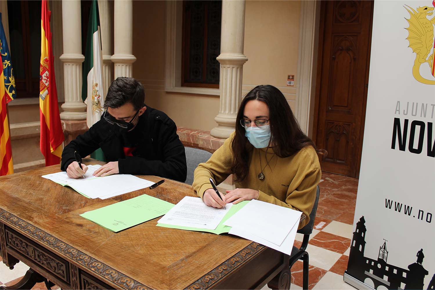 El alcalde de Novelda, Fran Martínez, y el presidente del Consell de la Joventut, David Castillo, han firmado el convenio de colaboración por el que el consistorio aporta al Consell 5.000€, cantidad que la entidad destinará a financiar el programa anual de actividades culturales, de formación, artísticas, salud, ocio educativo, deporte y tiempo libre desarrolladas por las asociaciones juveniles que forman parte de la misma, como es el caso del colectivo feminista Belladona, El Rogle, LGTBIQ+, Tots Toquem, la Asociación de Lectores de Cómic de Novelda (ALCN) y AOCAN (Asociación de Ocio, Cultura y Audiovisual).