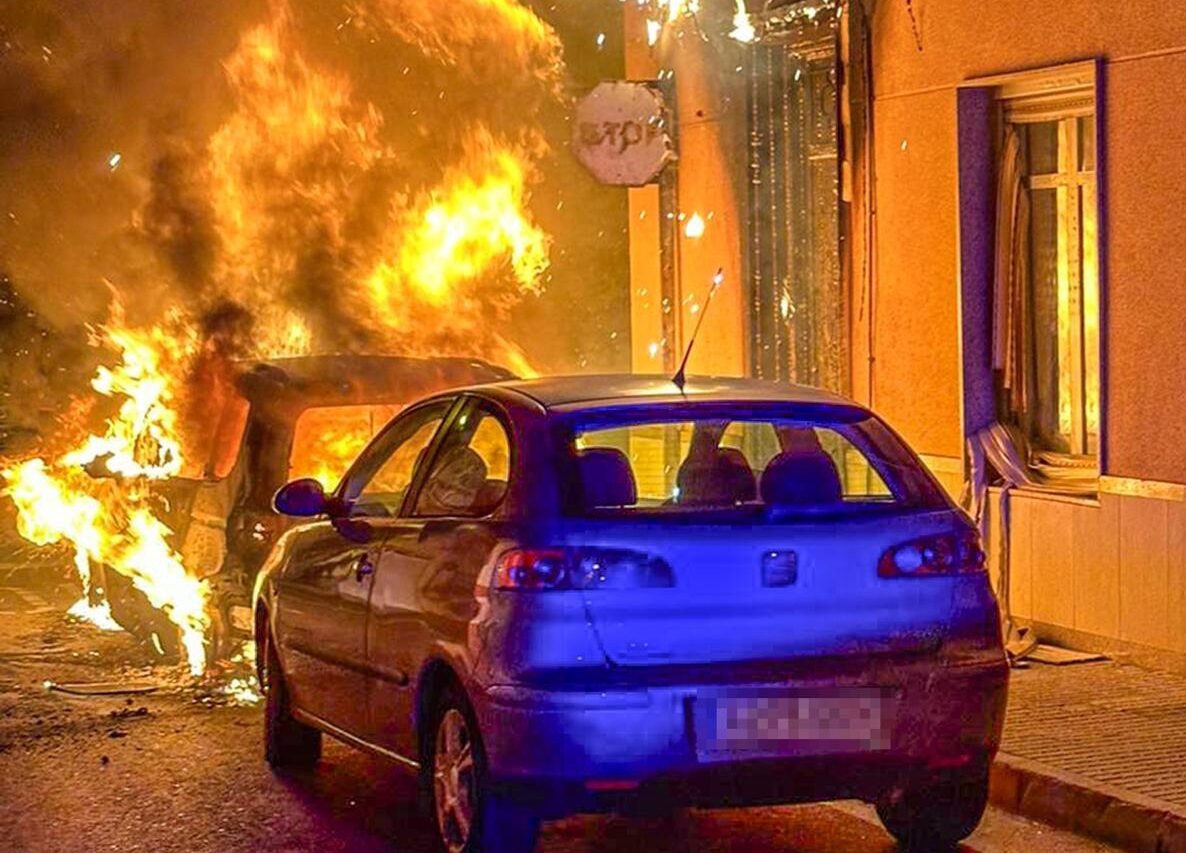 El incendio de un vehículo provoca daños en una fachada y en otro vehículo en Novelda