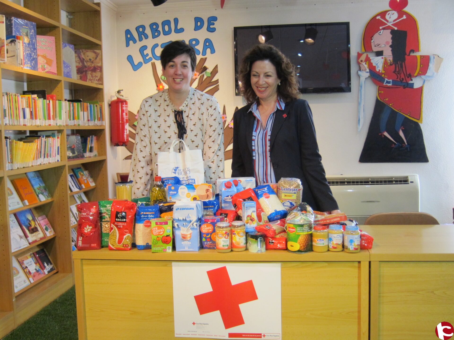 13 Abril. La concejalía de Cultura ha entregado a la Asamblea Local de Cruz Roja el primer lote de alimentos recogidos en la campaña de Biblioteca Solidaria que transforma la penalización por la devolución de libros fuera de plazo en un acto solidario con la aportación de productos no perecederos.