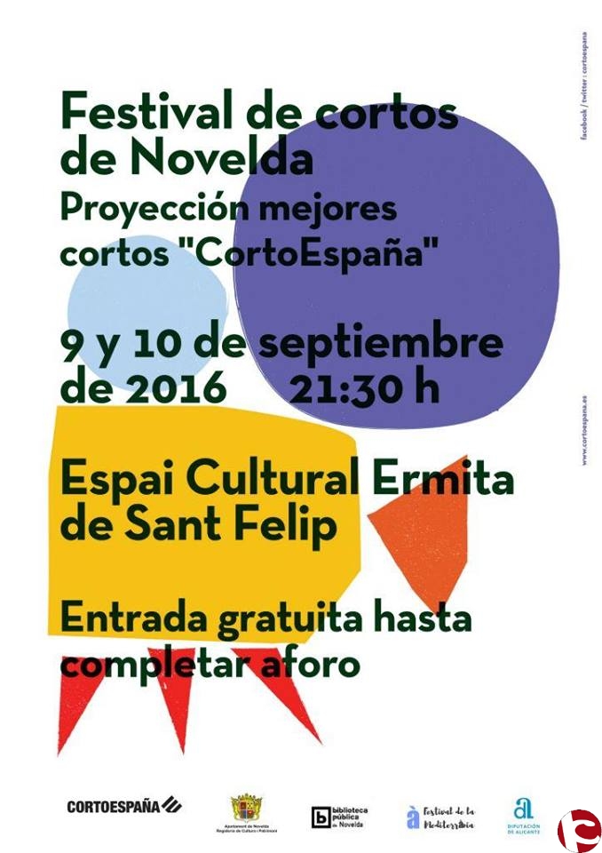 07 sept. El Espai Cultural Ermita de Sant Felip acogerá los días 9 y 10 de septiembre el Festival de Cortos de Novelda, con la proyección de 12 cortometrajes a lo largo de los dos días.