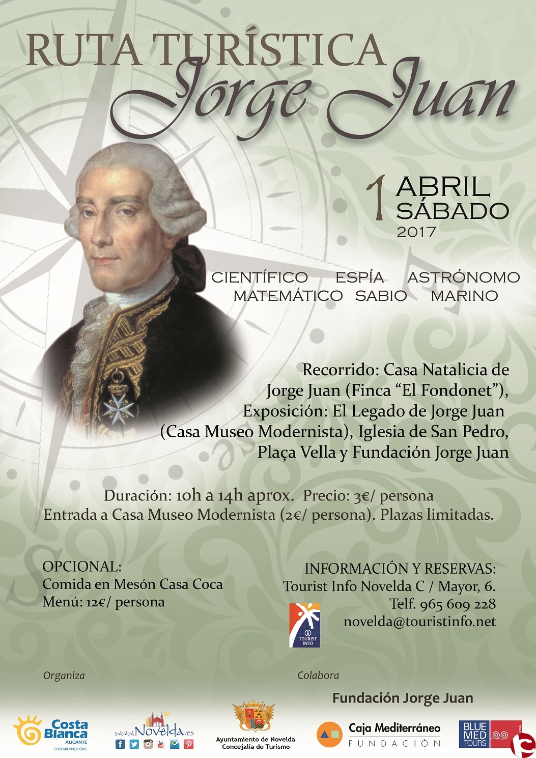 22 marzo. La figura de Jorge Juan y los rincones noveldenses relacionados con ella son el motivo de esta nueva ruta guiada que la concejalía de Turismo propone para el sábado, 1 de abril.
