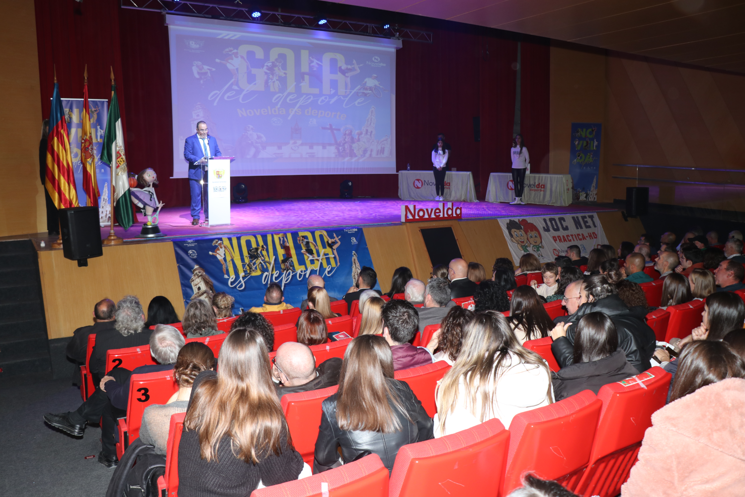 La gala de cerraba con la entrega de premios a los mejores deportistas de 2023, que recayeron en en Leyre Toledo, Toni García Ruíz y Pedro Esteba Córcoles y los reconocimientos la trayectoria deportiva, dedicando años al deporte, para el entrenador de baloncesto José María García Gómez y para Carlos Galvañ López, el deportista federado de mayor edad (80 años) del Club Billar Novelda.
