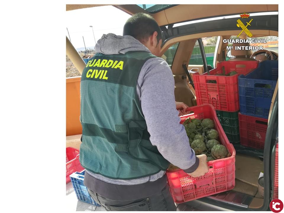 Alicante – 21/marzo/2019.- La Guardia Civil ha detenido a 2 personas y está investigando a otras 3 por un total de 5 delitos de hurto, en los que se sustrajeron más de 250 kilos de alcachofas, valoradas en unos 1500 euros.