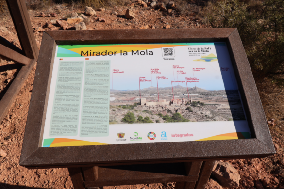 El Ayuntamiento de Novelda ha puesto en funcionamiento este nuevo mirador que, situado a 300 metros y alrededor de siete minutos andando desde el aparcamiento de la explanada del Castillo de La Mola, en el recorrido inicial del SL-CV 174 “Refugios Canteros”, posibilitará a los senderistas descansar y contemplar en su conjunto el complejo histórico de La Mola.