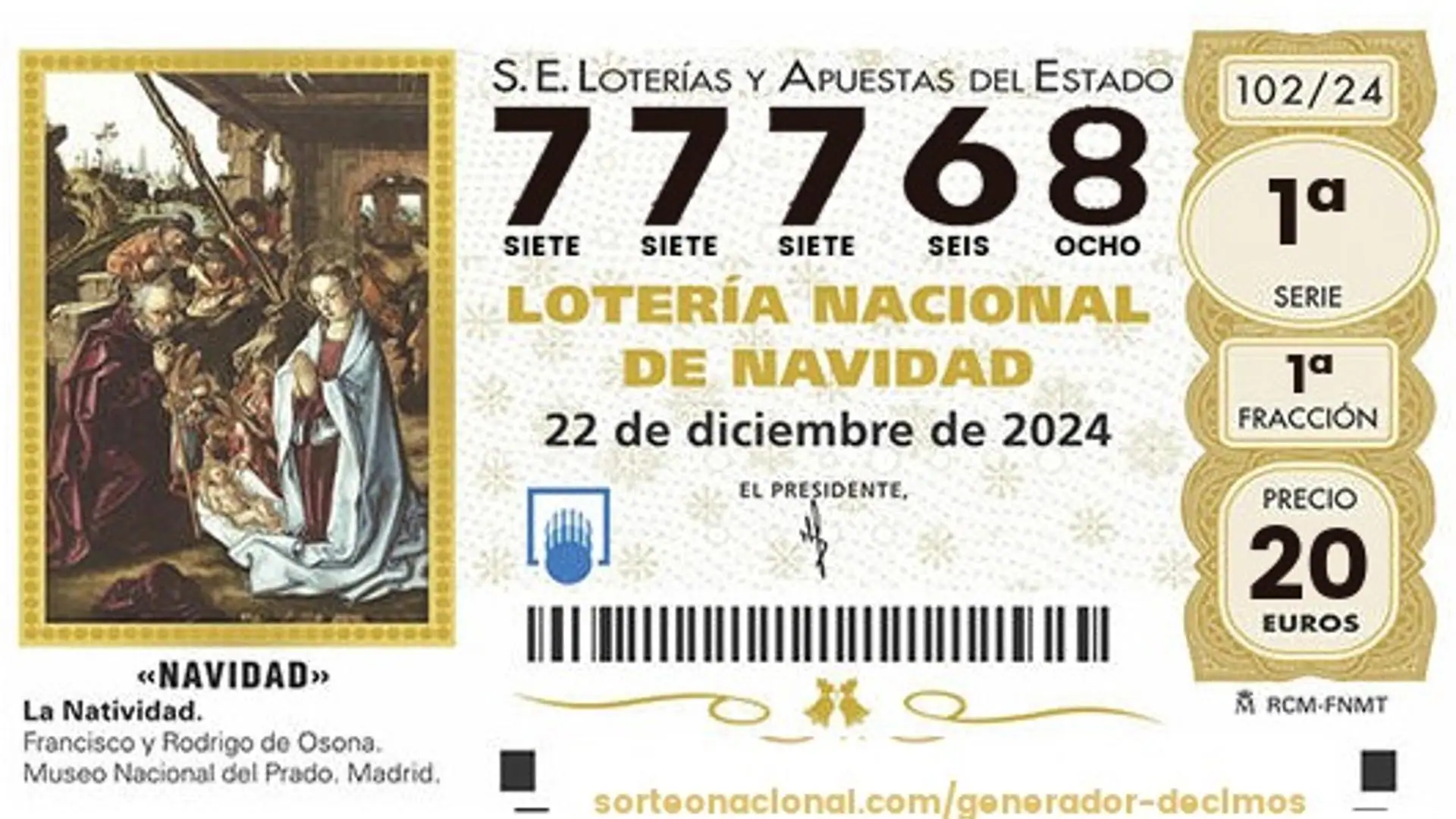 El número 77.768 ha resultado agraciado con el primero de los dos cuartos premios del Sorteo Extraordinario de la Lotería de Navidad, dotado con 200.000 euros a la serie.