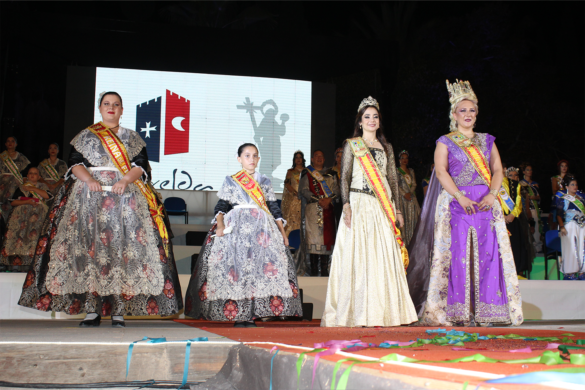 Los abanicos, como es tradición desde 1964, se encargaron de decidir la elección de las reinas de las fiestas, cargos que recayeron en Carla Segura Pérez, del barrio San Roque, y Amaia Becerra Crespo, del barrio de La Estación, que fueron coronadas por sus predecesoras sobre un escenario ocupado por las representantes mayores e infantiles de todos los barrios de Novelda, acompañadas por las reinas del Casino, y por los cargos festeros de las diferentes comparsas de moros y cristianos que este año estrenan embajadora cristiana, cargo que ocupará Isabel Forniés que se convierte en la primera mujer en Novelda que declamará, junto al embajador moro, los textos escritos en 1972 por el poeta local Luis Pérez Beltrá.