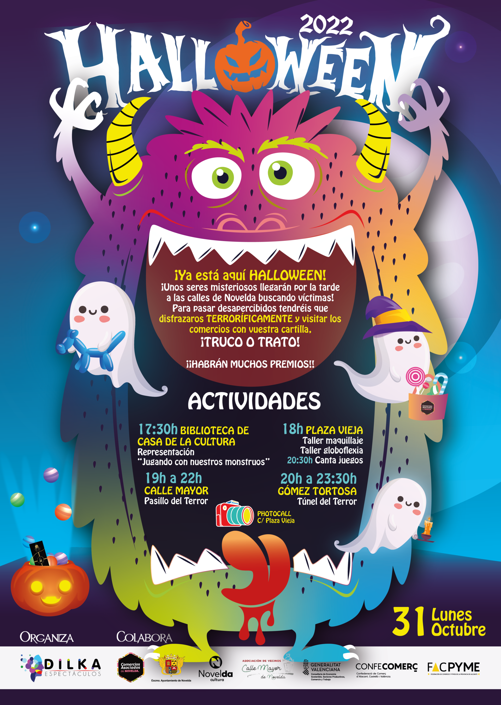 Las concejalías de Cultura y Bibliotecas, con la colaboración de Comercios Asociados de Novelda y la Asociación de Vecinos de la calle Mayor, han presentado la programación preparada para la fiesta de Halloween, una actividad enmarcada en la festividad de Tots Sants que ambientará las calles de la ciudad el próximo lunes, 31 de octubre.