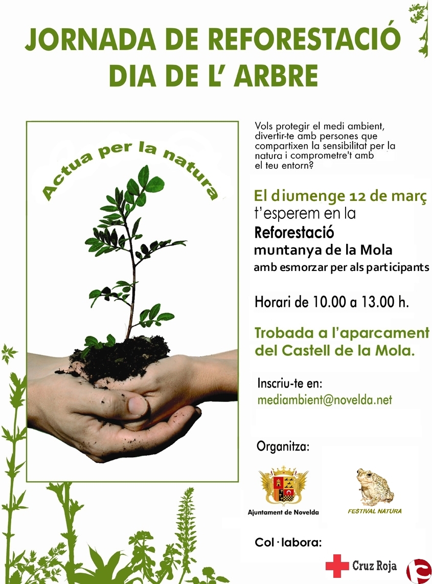 A través de esta nota informativa se quiere invitar a todas la personas que quieran actuar por la naturaleza y realizar una actividad al aire libre, a participar de esta actividad de reforestación. La actividad está prevista para el próximo domingo 12 de marzo, teniendo previsto comenzar a las 10:00 horas y siendo el punto de encuentro la explanada del aparcamiento del Castillo de la Mola.