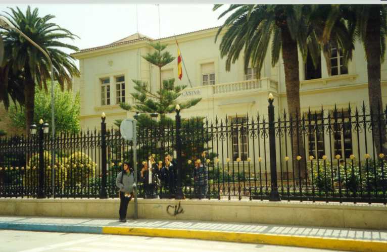 Vista actual del Casino de Novelda. Los cambios que ha sufrido el edificio han sido pocos, aunque sufrió un incendio en los años 90. Sin embargo, la zona de viñas que había tras él ha desaparecido y en su lugar se encuentra el Parque de Félix Rodríguez de la Fuente y nuevas calles y construcciones.