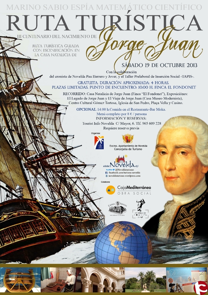 La Concejalía de turismo organiza una nueva ruta turística gratuita para conocer la figura del ilustre matemático y científico Jorge Juan y Santacilia para el sábado 19 de octubre.