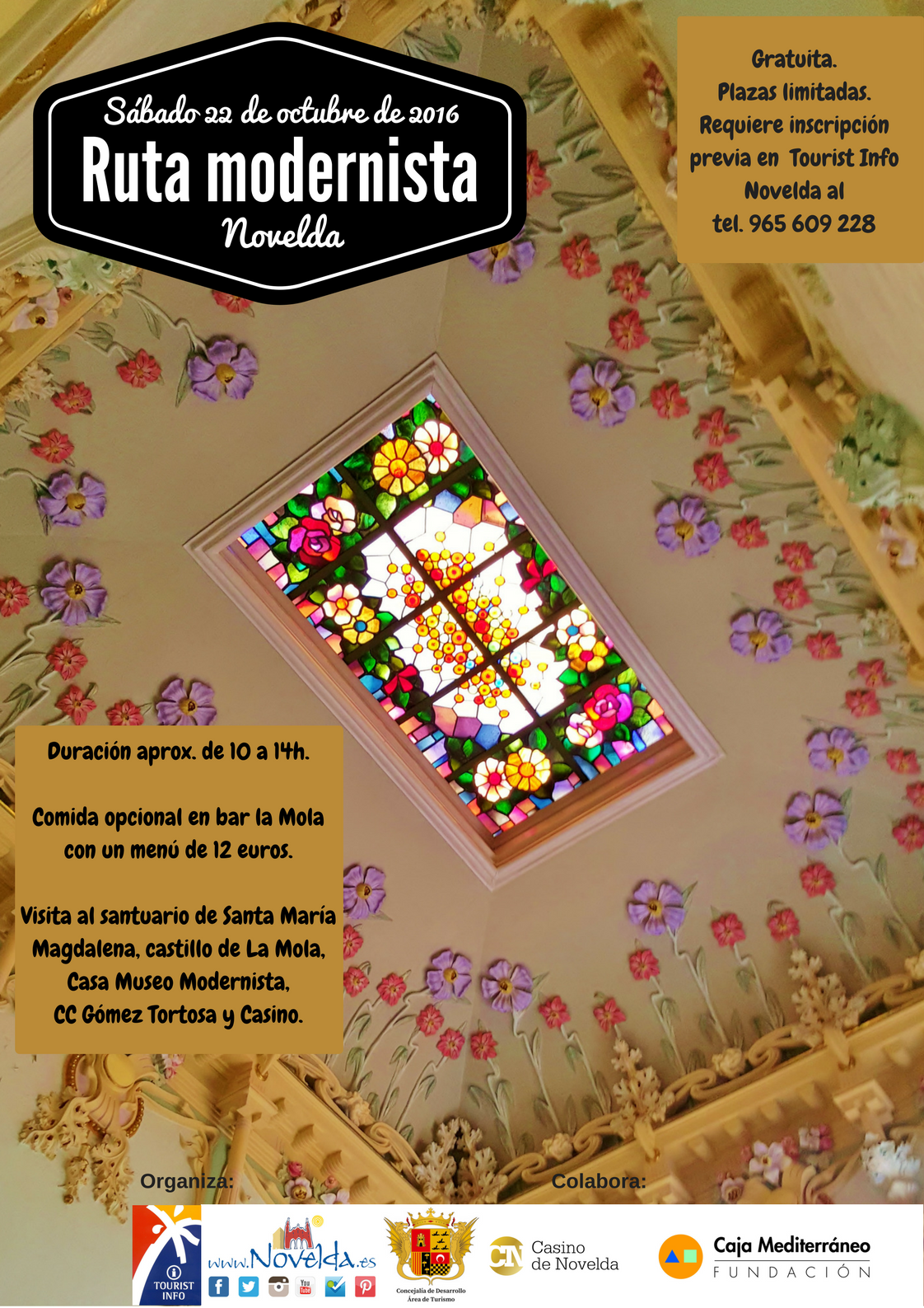 Los interesados en participar en la Ruta Modernista, guiada y gratuita, deben solicitar su inscripción en la Tourist Info (C/ Mayor, 6).