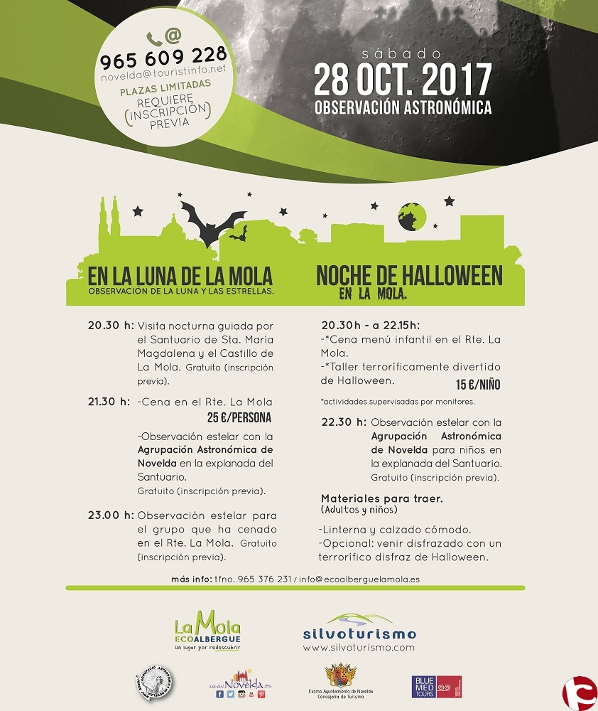 16 oct. La concejalía de Turismo en colaboración con el ecoalbergue de La Mola, organiza para el sábado 28 de octubre una visita nocturna al Santuario y Castillo de La Mola, y una observación lunar en la explanada del Santuario.