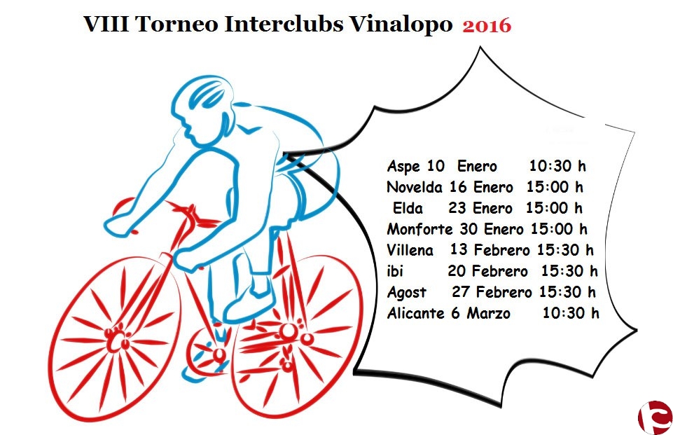 Nos alegra poder anunciar a todos los socios del club y aficionados al ciclismo de nuestra localidad, que este próximo año 2016 organizaremos una de las etapas del VIII Torneo Interclubs en Novelda. Después de hablar con la dirección del circuito y gracias al apoyo de nuestros sponsors, el próximo día 16 de Enero de 2016 la prueba de Novelda volverá al calendario del circuito.