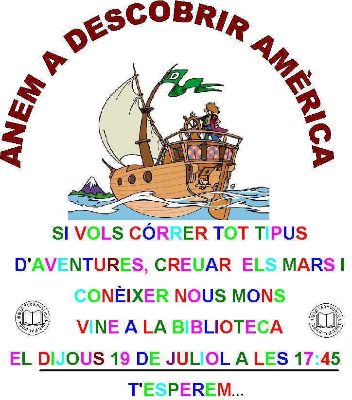 A las 17:45 h. se abrirán las puertas de la Biblioteca para llevar a cabo una animación lectora donde los niños y padres podrán pasarlo bien con diferentes tipos de actividades, habrá manualidades, cuentacuentos, juegos… todo alrededor de la figura de Colón, el descubrimiento de América y la cultura precolombina que es muy rica y diversa. Como ya es tradicional saldremos a la calle.