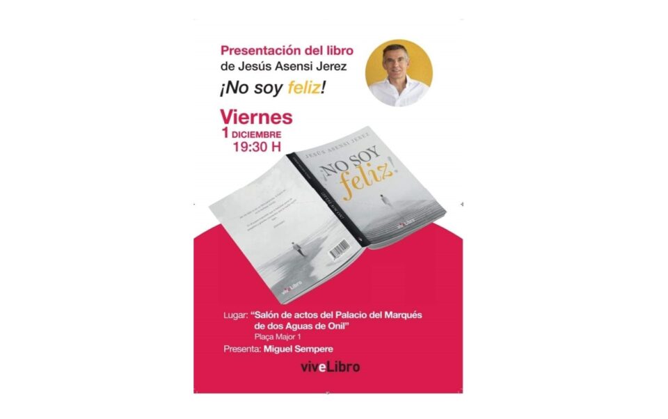 El proper 1 de desembre es presenta a Onil el llibre «¡No soy feliz!» de Jesús Asensi Jerez, a les 19:30h al Saló d’Actes del Palau-fortalesa del «Marquès de Dos Aigües» (Plaça Major, 1).