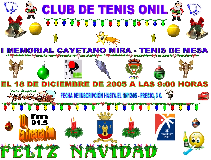 El este próximo domingo a partir de las 9:00 horas de la mañana se celebrara en Onil el I Memorial Cayetano Mira en Tenis de Mesa ( Abierto) fecha tope de inscripción hasta el viernes 16 a las 22:00 horas. El lugar que se jugaran los partidos en el Pabellón del Polideportivo Municipal de Onil, contaremos con la presencia de Remedios Tortosa Belda subcampeón de España en tenis de mesa en categoría de femenina de silla de ruedas.