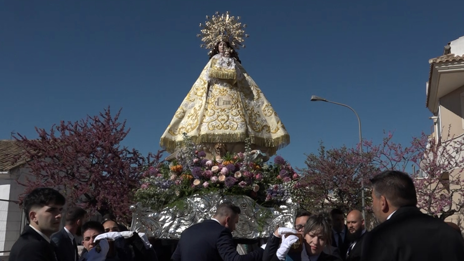 Des d’allí s’acompanyarà la imatge en el seu recorregut fins a la seua entrada al Portal a les 11:00 hores, moment especialment simbòlic conegut tradicionalment com les “9 hores solars”.