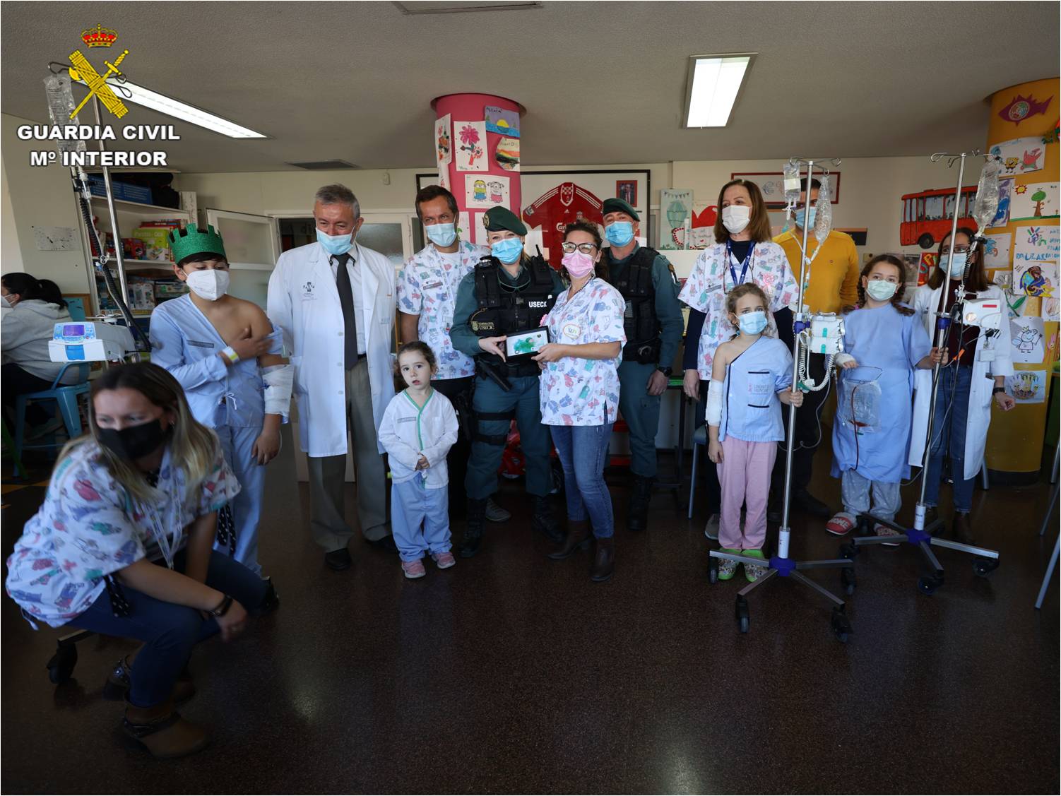 Los grandes protagonistas de hoy han sido 20 niños de 2 a 15 años, del Servicio de Pediatría, (como son cirugía y oncología pediátrica) del Hospital General Universitario de Alicante. Uno de ellos, que cumplía hoy 10 años, se ha llevado una grata sorpresa. Aprovechando la visita de la Guardia Civil, los niños y sus familiares, que les han acompañado, se han interesado por el trabajo desarrollado por los agentes de la USECIC.