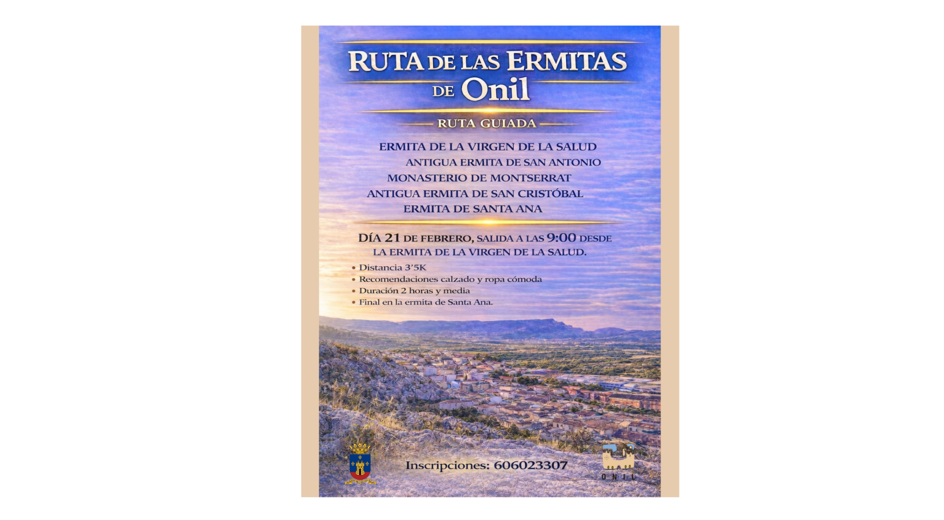L’Ajuntament d’Onil, a través de la Regidoria de Turisme, presenta la nova Ruta de les Ermites d’Onil, una iniciativa creada amb l’objectiu de potenciar i posar en valor el patrimoni cultural, històric i natural del municipi.