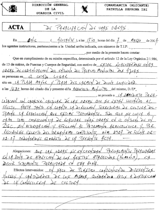 Adjuntamos copia del acta levantada por la Guardia Civil.